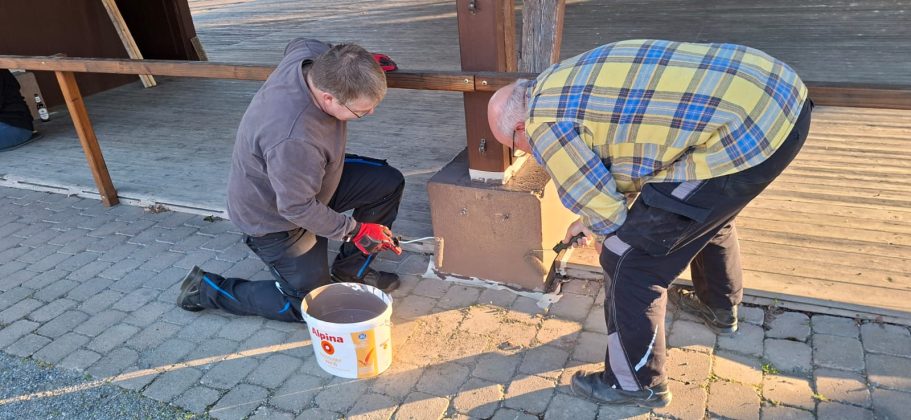 Die andere Gruppe teilte sich nochmals auf, die einen klebten ab und die anderen griffen zum Pinsel und Farbrolle.Nach 2 Stunden war 2/3 geschafft der Betonfundamente mit einem neuem Anstrich verschönert. Vielen Dank an die tatkräftige Untersützung.