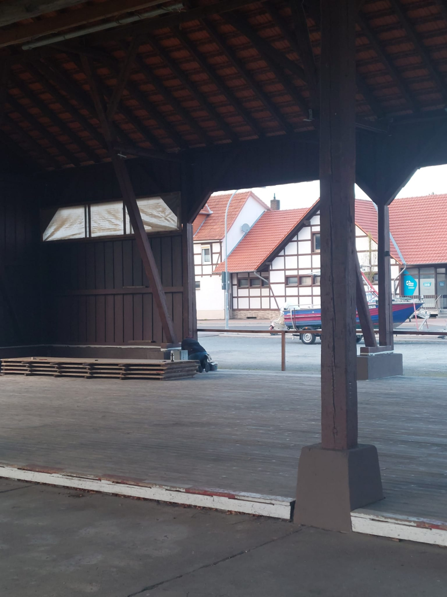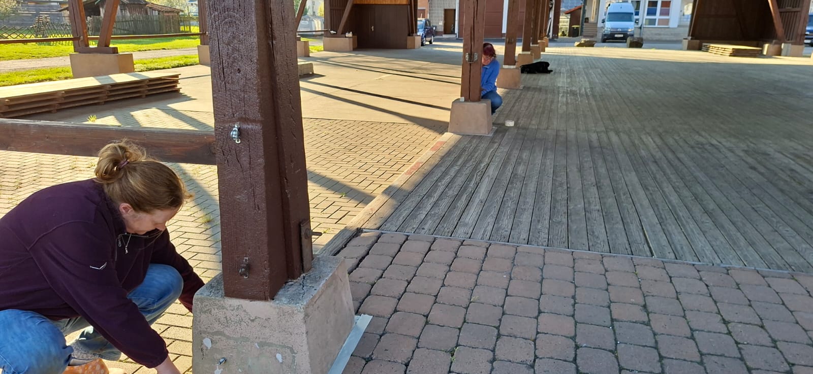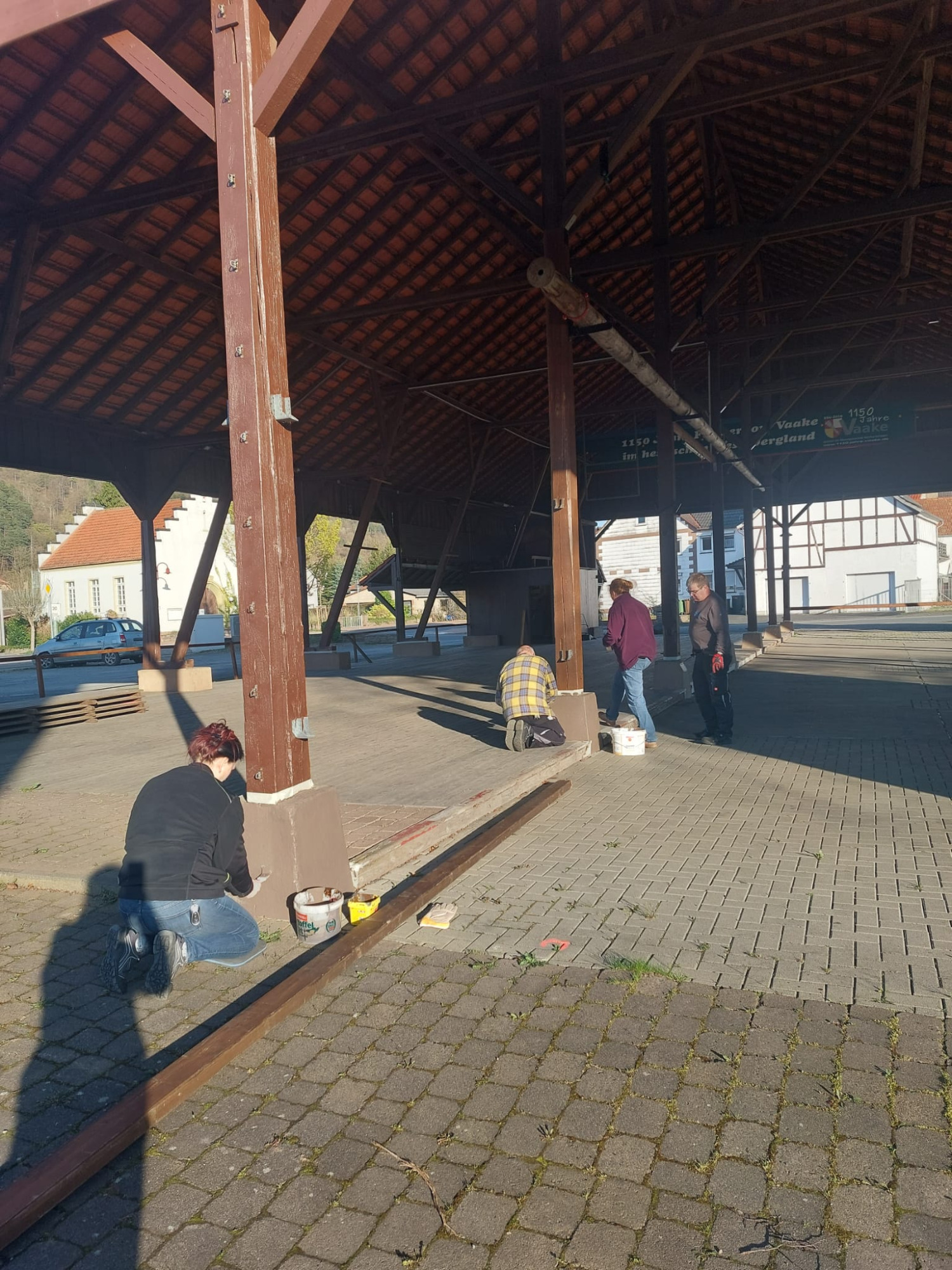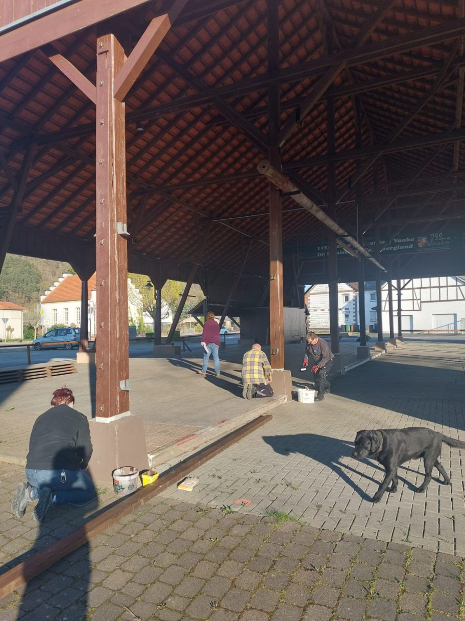 Renovierungsarbeiten am Dreschschuppen am 14.04.2026 und Bänkeaufstellung