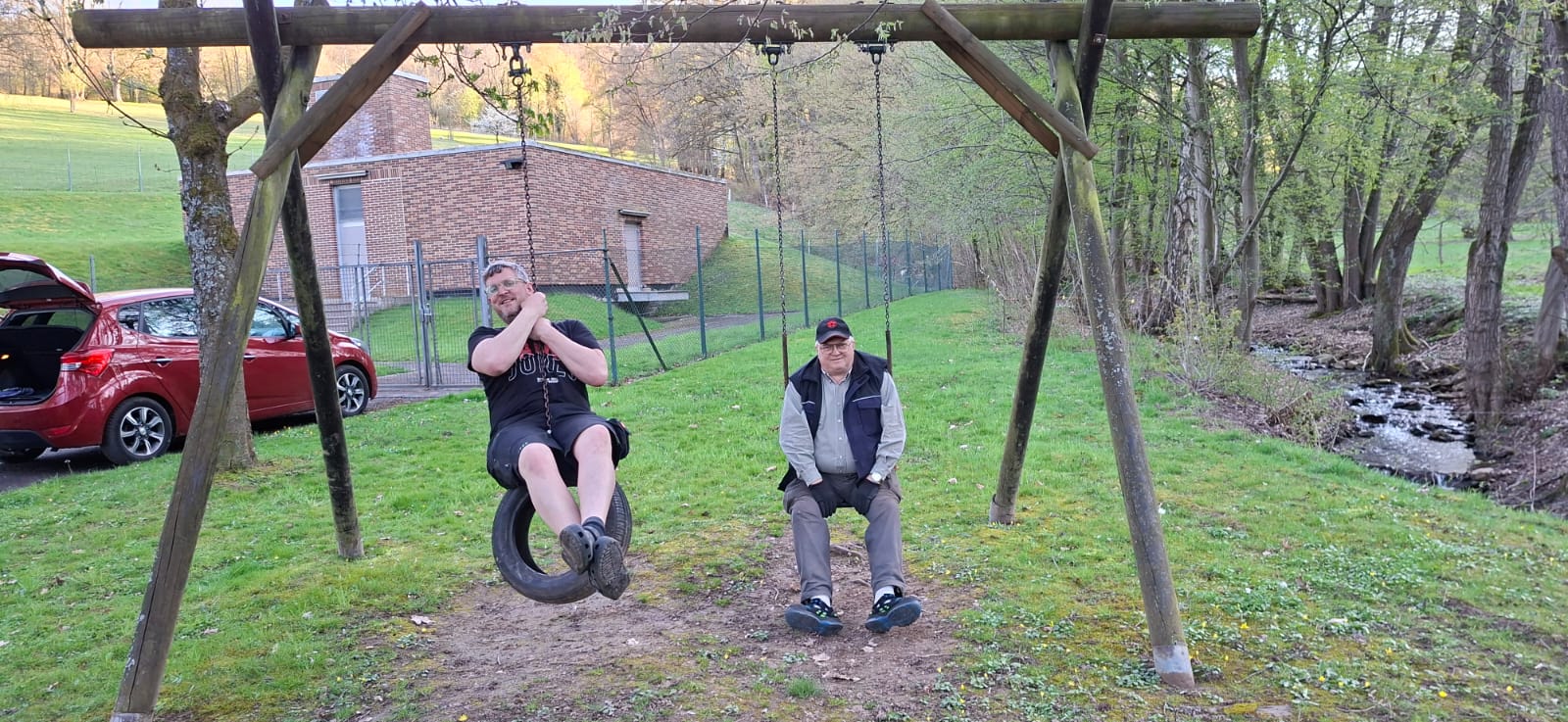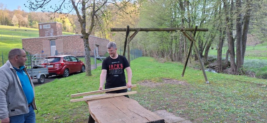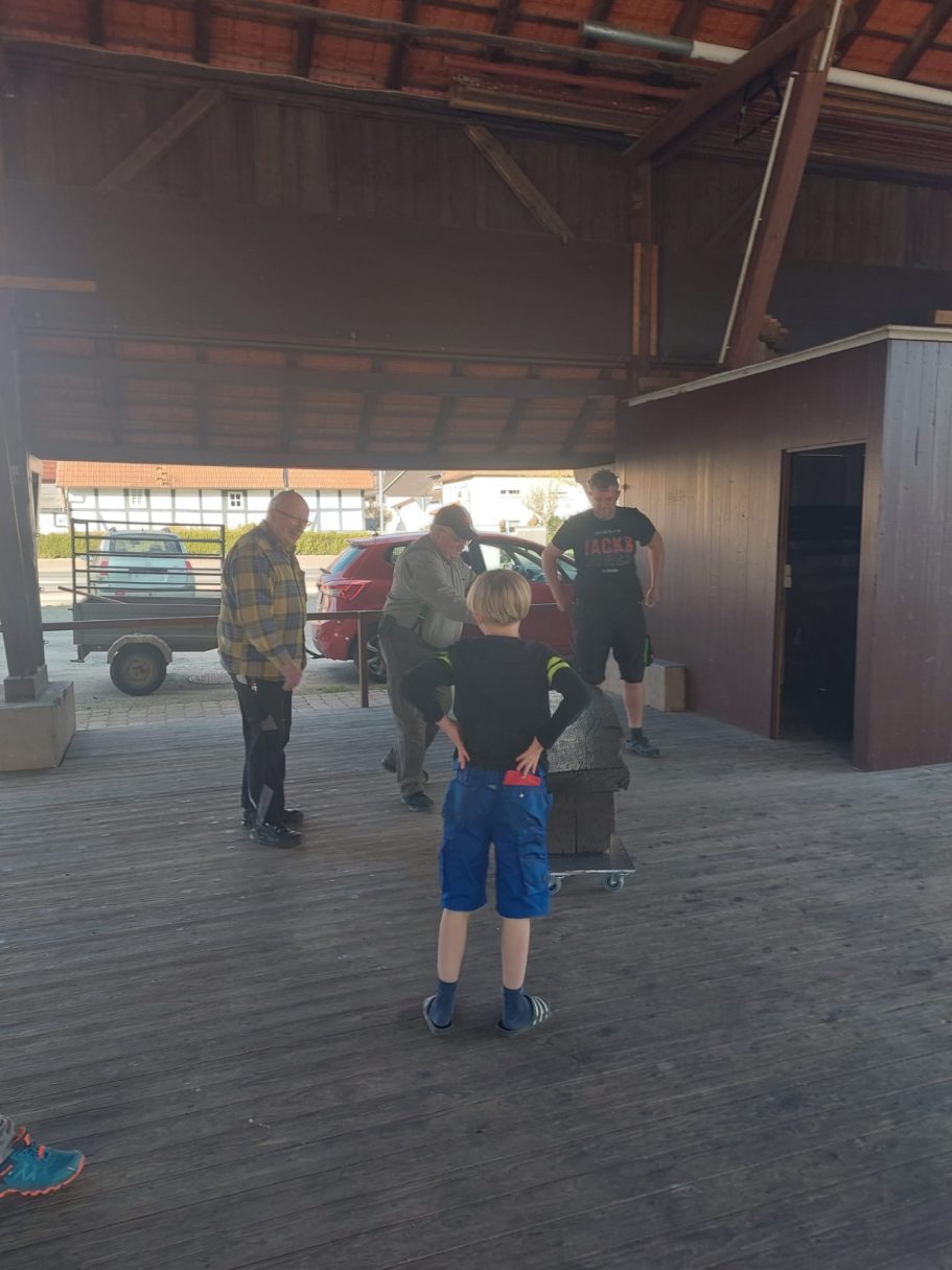 Also teilten wir uns auf, die eine Gruppe blieb am Dreschschuppen und die andere Gruppe fuhr die Sitzgruppe aufstellen. Natürlich durfte auch dieses Jahr der Härtetest für die Schaukel nicht fehlen.